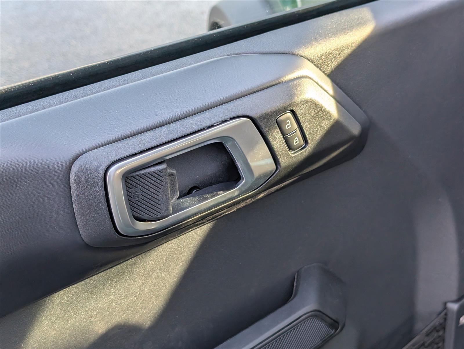 - Includes black molded-in-color (MIC) door handles, black molded-in-color (MIC) fender flares, black-painted molded-in-color (MIC) grille with white Bronco lettering, black molded-in-color (MIC) sideview mirror caps, black appearance graphics package, 17 inch black high gloss painted aluminum wheels, and Shadow Black painted hard top.