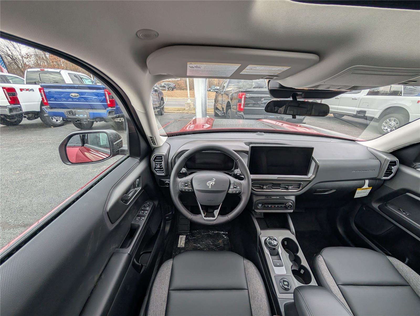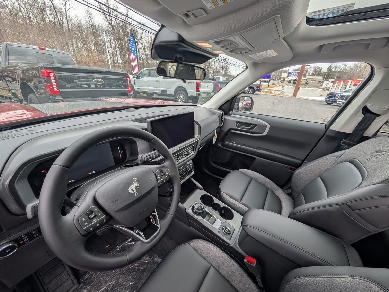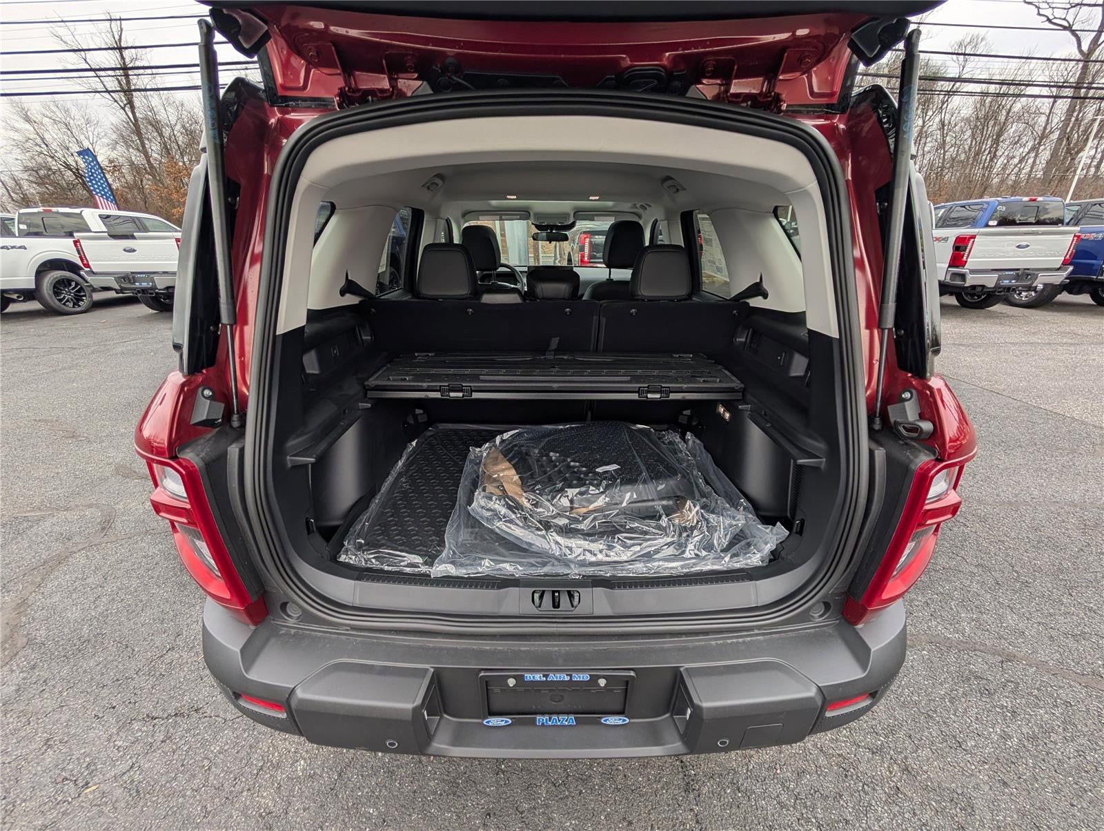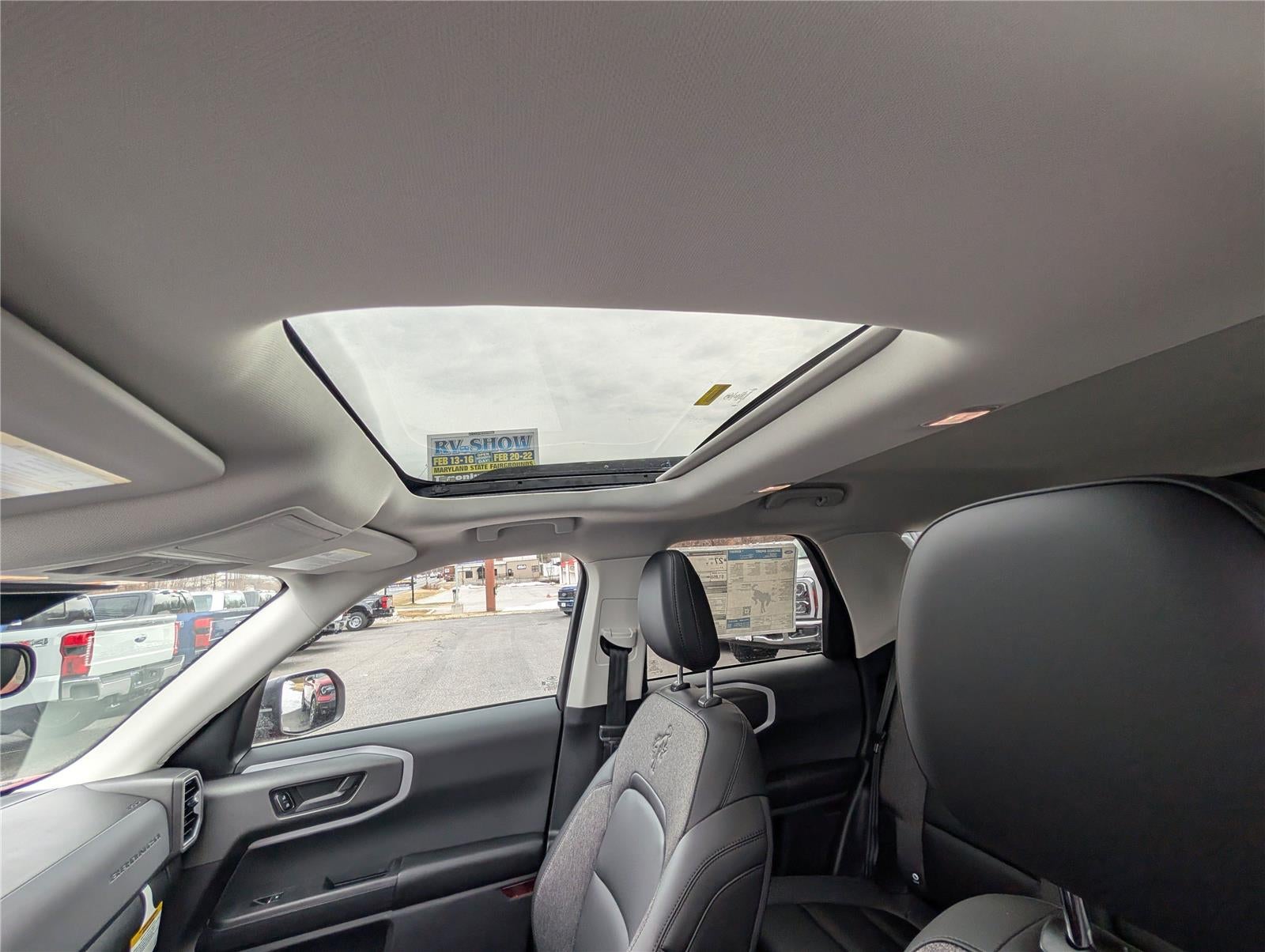 - Includes cargo mat, front and rear floor liners (without carpet mats), textured matte black hood graphic, Carbon Black grille with black painted Bronco lettering, painted shadow black roof, premium-trimmed front sport contour bucket seats, front driver/passenger seat back map pockets, unique badges with black accents, 17 inch matte black-painted aluminum wheels, 225/65R17 102H all-season tires, and black painted Bronco Sport lettering.