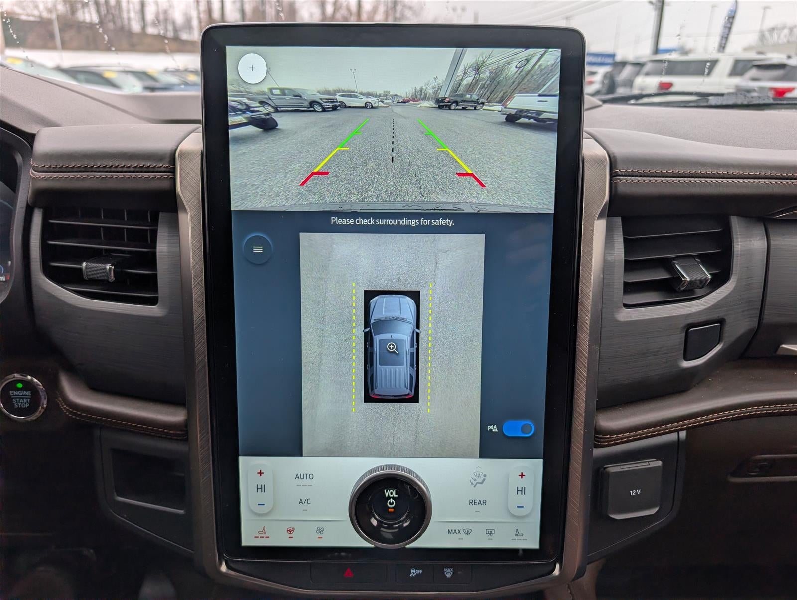 - The vehicle is equipped with a camera that displays an image of the area behind the vehicle on an interior display. The camera is equipped with its own washer.