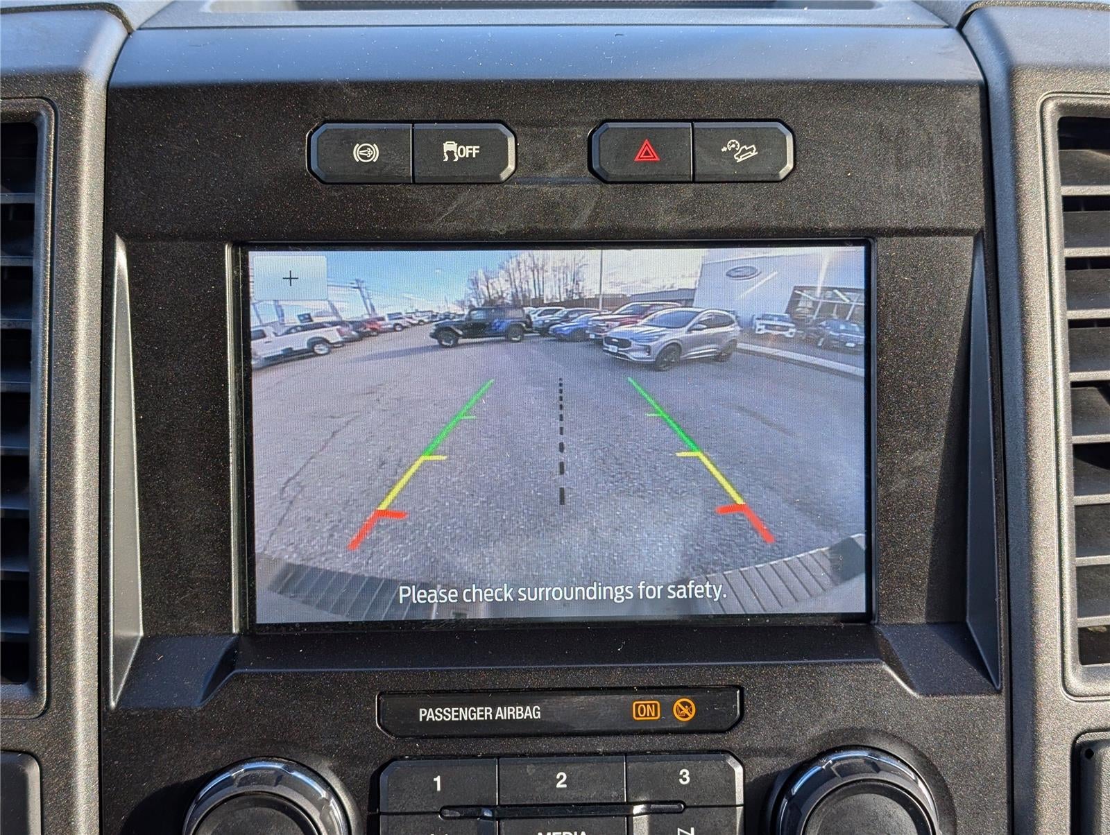 - The vehicle is equipped with a camera that displays an image of the area behind the vehicle on an interior display.
